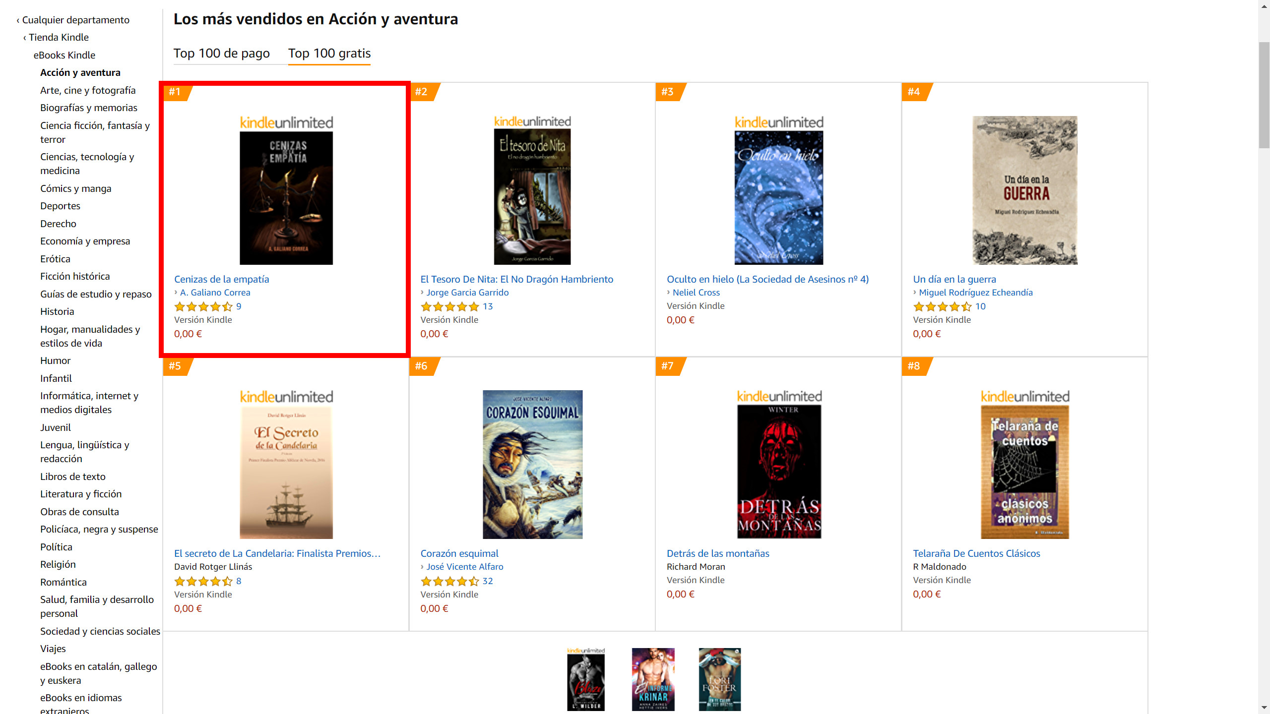 «Cenizas de la empatía» ha estado en los primeros puestos de amazon kindle en España