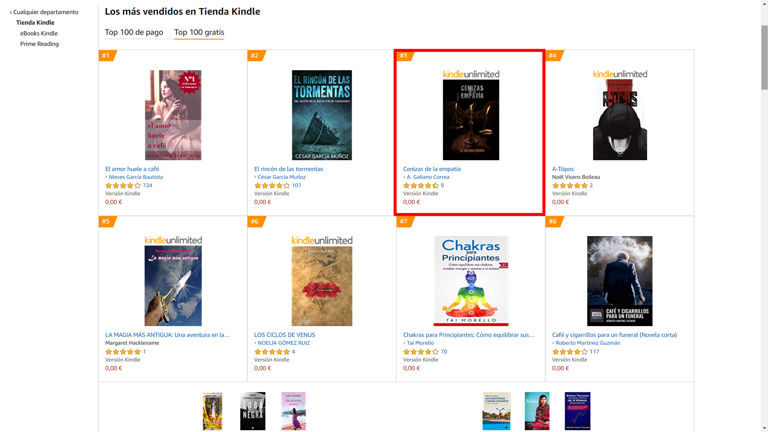 «Cenizas de la empatía» ha estado en los primeros puestos de amazon kindle en España